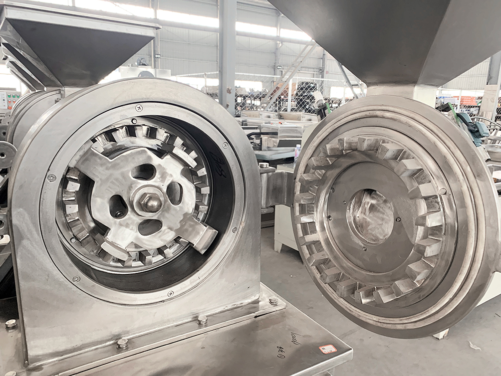 本機(jī)結(jié)構(gòu)簡單、堅固、運(yùn)轉(zhuǎn)平穩(wěn),粉碎效果好、噪音低、振動小、生產(chǎn)過程中無粉塵飛揚(yáng),被粉碎物可直接由主機(jī)磨腔中排出,粒度大小通過更換不同孔徑篩網(wǎng)而控制。符合GMP要求。